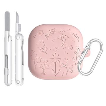 Étui en silicone gravé floral Samsung Galaxy Buds4/Buds4 Pro avec stylos de nettoyage - Rose