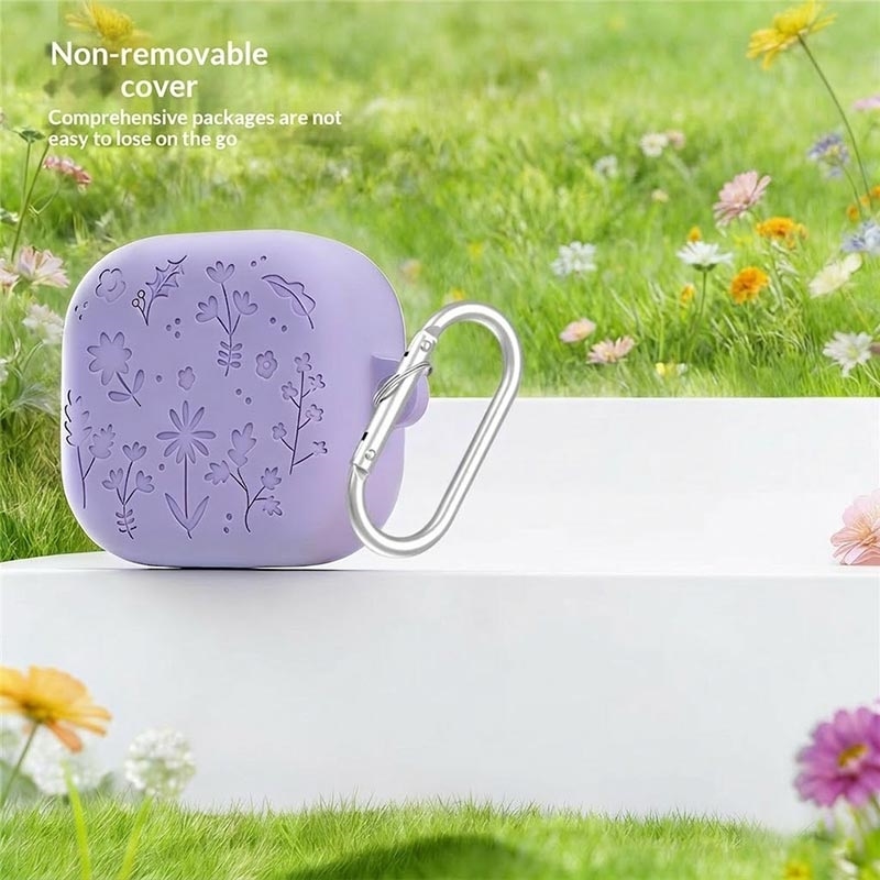 • Étui en silicone gravé floral avec stylos de nettoyage et mousqueton pour Samsung Galaxy Buds4, Galaxy Buds4 Pro