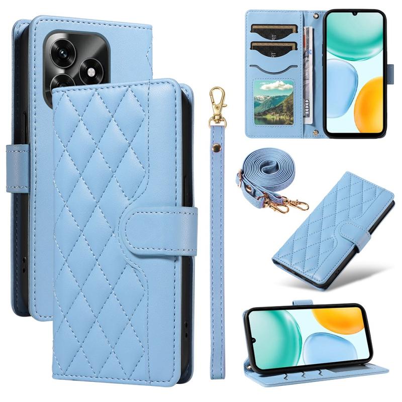 Étui de luxe matelassée avec bandoulière et poignet pour Honor X5c Plus - Étui protectrice avec motif en losange