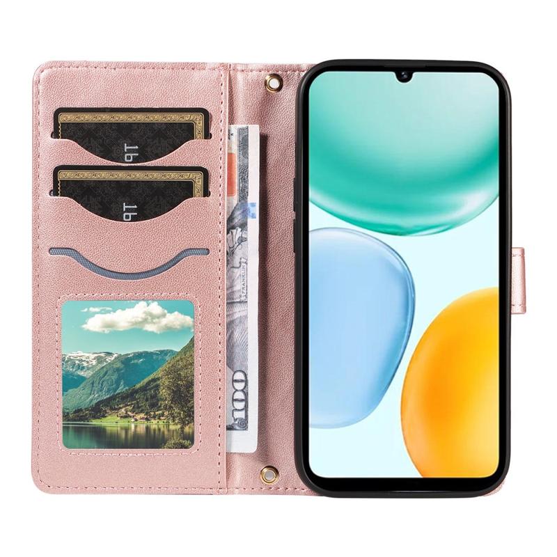 Étui de luxe matelassée avec bandoulière et poignet pour Honor X5c Plus - Étui protectrice à motif en losange