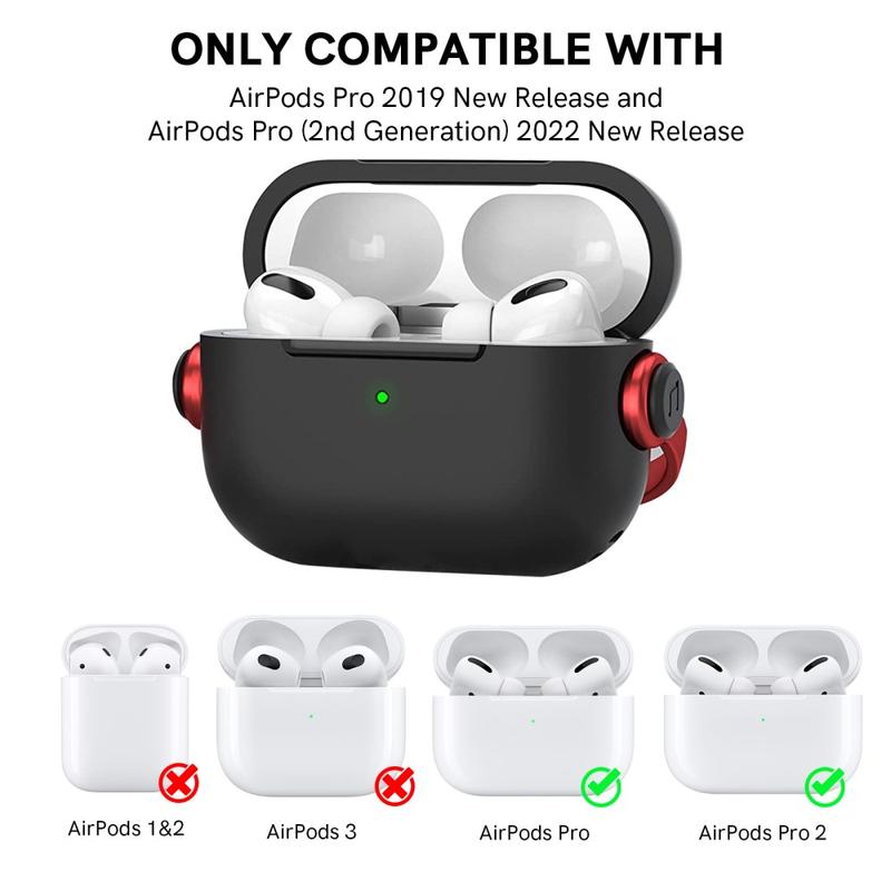 AhaStyle WG109 Étui hybride pour AirPods Pro, AirPods Pro 2 - Étui de protection antichoc en TPU + PC avec sangle, clip de verrouillage et anneau de support pliable