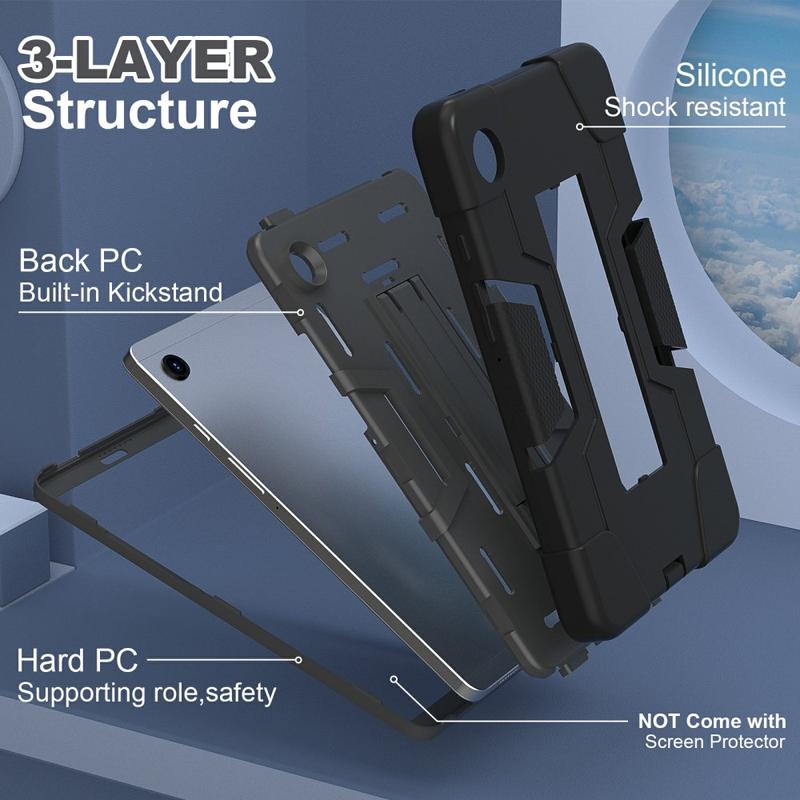 • Étui hybride de style robot pour Samsung Galaxy Tab A11 - Étui de protection triple couche avec béquille intégrée et porte-stylet