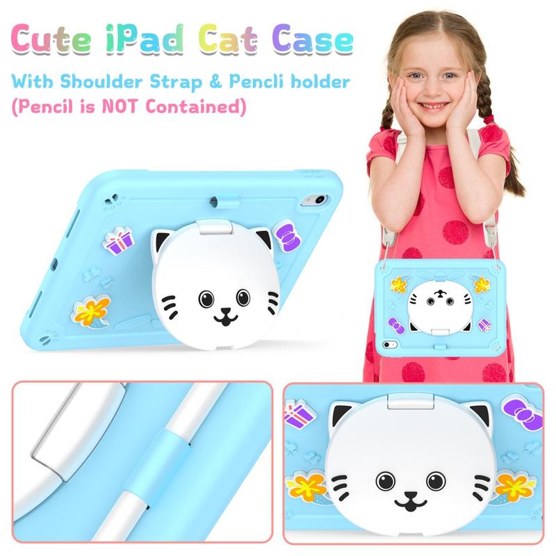Étui hybride chat mignon avec béquille, bandoulière et porte-stylet pour iPad (2022), iPad (2025)