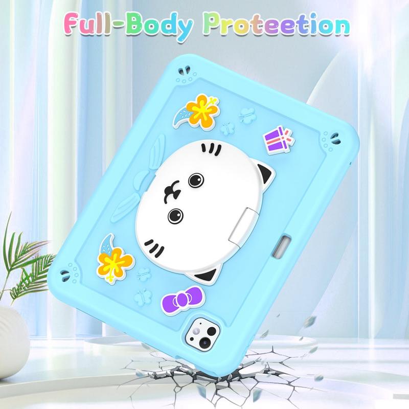 Étui hybride iPad Pro 11 2024/2025 avec béquille et chat mignon - Bleu clair