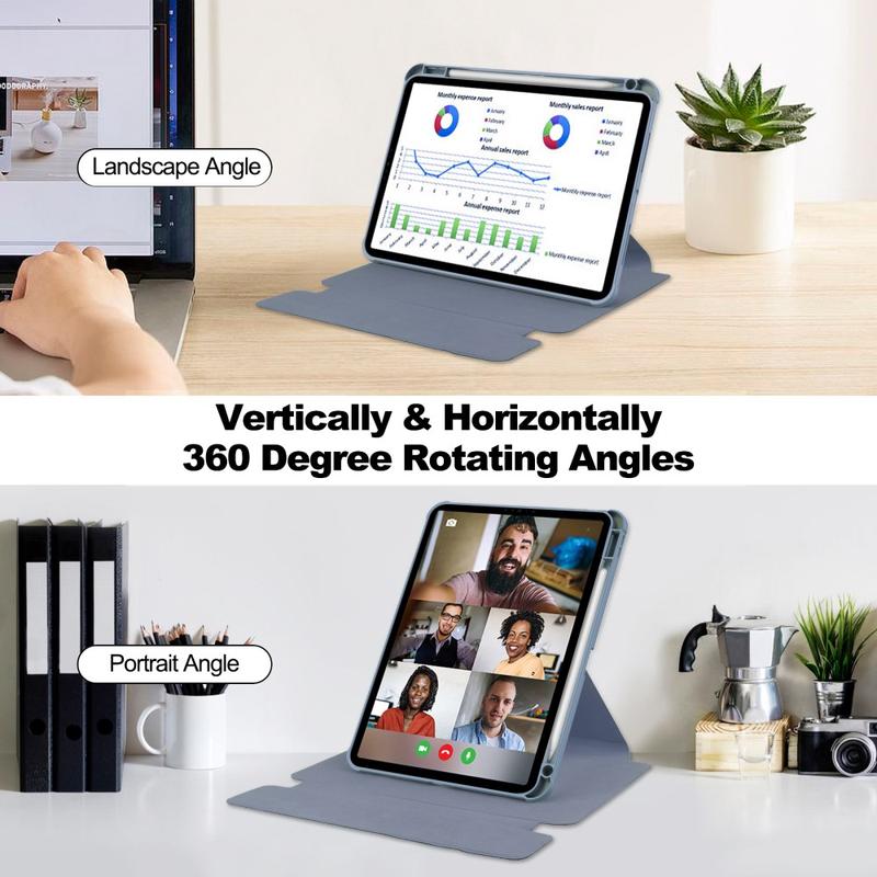 Les étuis pivotants pour tablettes ont gagné en popularité à mesure que les écrans des appareils devenaient plus grands et plus indispensables pour les tâches quotidiennes. Le pivotement à 360° offre des avantages ergonomiques et permet d'obtenir l'angle idéal pour regarder et taper. En outre, cette conception minimise la tension du cou en vous permettant de positionner l'écran à la hauteur et dans l'orientation les plus confortables, améliorant ainsi votre expérience globale de la tablette.
