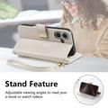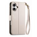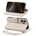 Etui iPhone 17 à motifs floraux et de feuilles avec pochette zippée et dragonne - Blanc