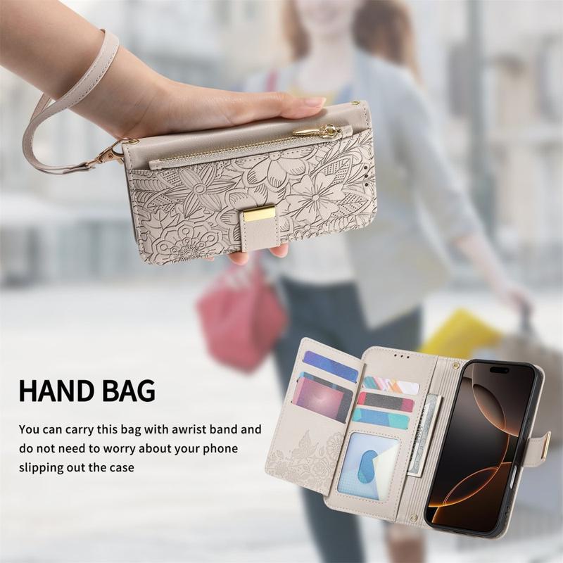 Les étuis portefeuille sont devenus de plus en plus populaires en tant qu'alternative écologique au port d'un portefeuille et d'un étui pour l'iPhone 17. Le processus de gaufrage floral n'améliore pas seulement l'apparence, mais renforce également la surface en polyuréthane, ce qui la rend plus durable contre les rayures.