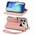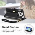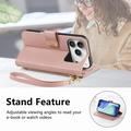Etui portefeuille à motifs floraux et de feuilles avec pochette zippée et dragonne pour iPhone 17 Pro Max
