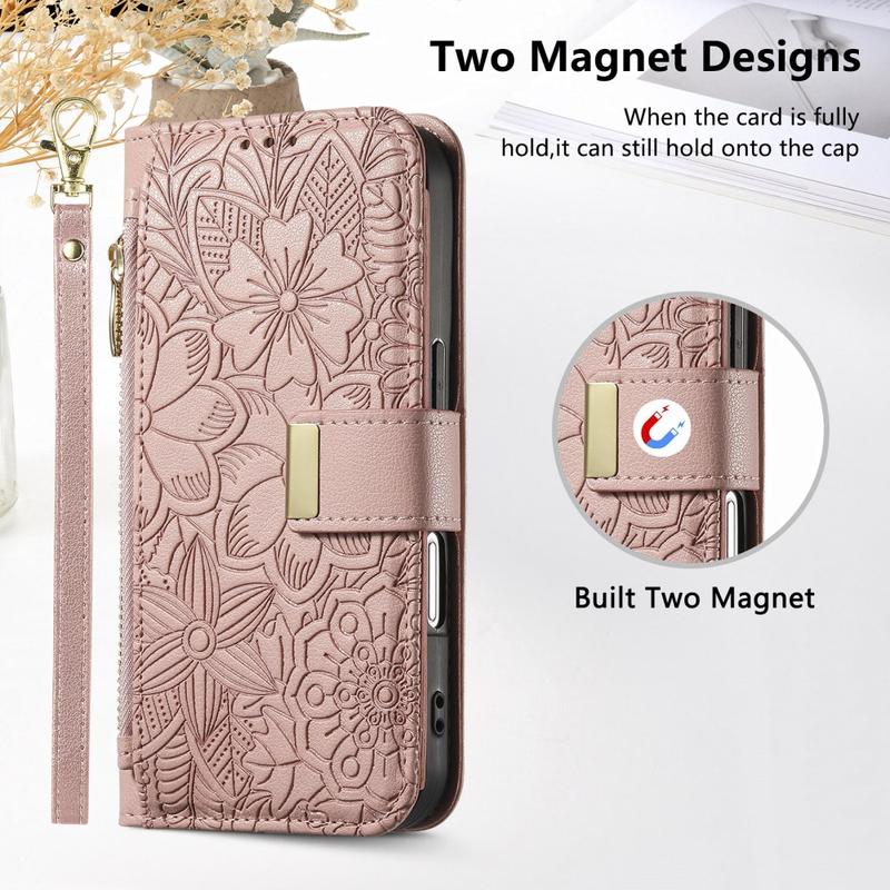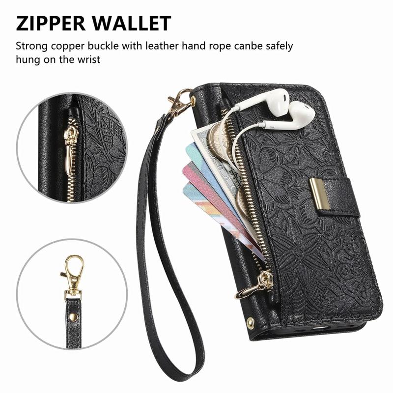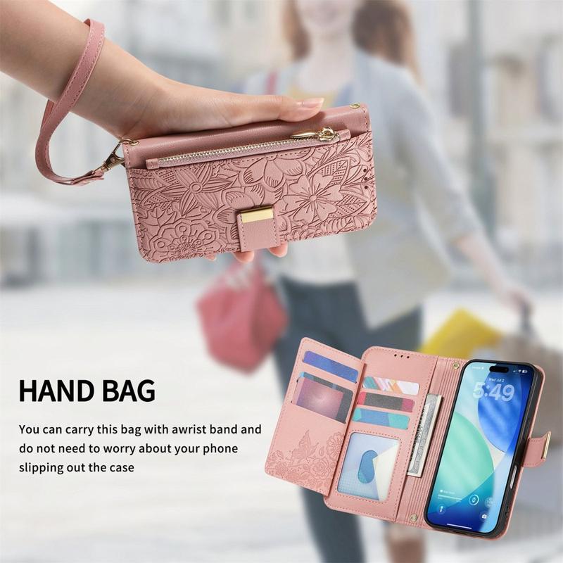 Les étuis portefeuille sont devenus de plus en plus populaires en tant qu'alternative écologique au port d'un portefeuille et d'un étui pour l'iPhone 17 Pro Max. Le processus de gaufrage floral n'améliore pas seulement l'apparence, mais renforce également la surface en polyuréthane, ce qui la rend plus durable contre les rayures.
