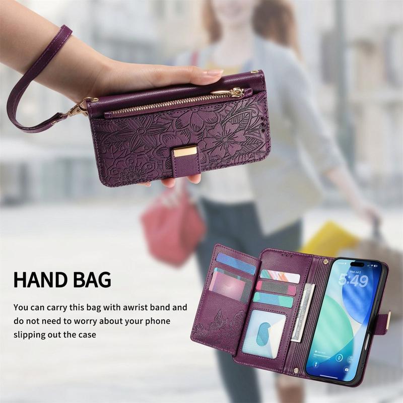 Les étuis portefeuille sont devenus de plus en plus populaires en tant qu'alternative écologique au port d'un portefeuille et d'un étui pour l'iPhone 17 Pro Max. Le processus de gaufrage floral n'améliore pas seulement l'apparence, mais renforce également la surface en polyuréthane, ce qui la rend plus durable contre les rayures.