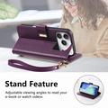 Etui portefeuille à motifs floraux et de feuilles avec pochette zippée et dragonne pour iPhone 17 Pro Max