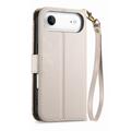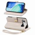 Etui iPhone Air à motifs floraux et de feuilles avec pochette zippée et dragonne - Blanc