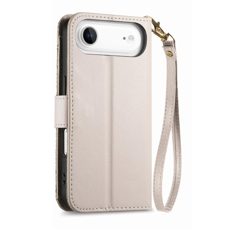 • Etui portefeuille à motifs floraux et de feuilles avec pochette zippée et dragonne pour iPhone Air