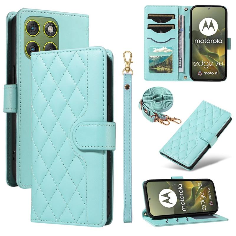 • Étui de luxe matelassée avec bandoulière et poignet pour Motorola Edge 70 - Étui protectrice à motif en losange