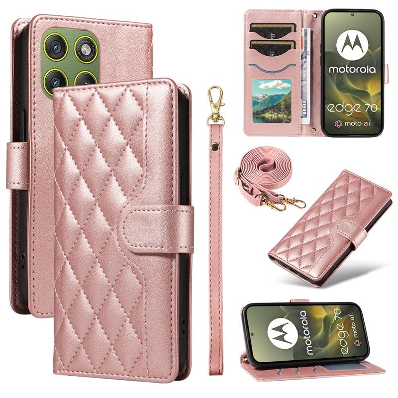 Étui de luxe matelassée avec bandoulière et poignet pour Motorola Edge 70 - Étui protectrice à motif en losange