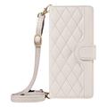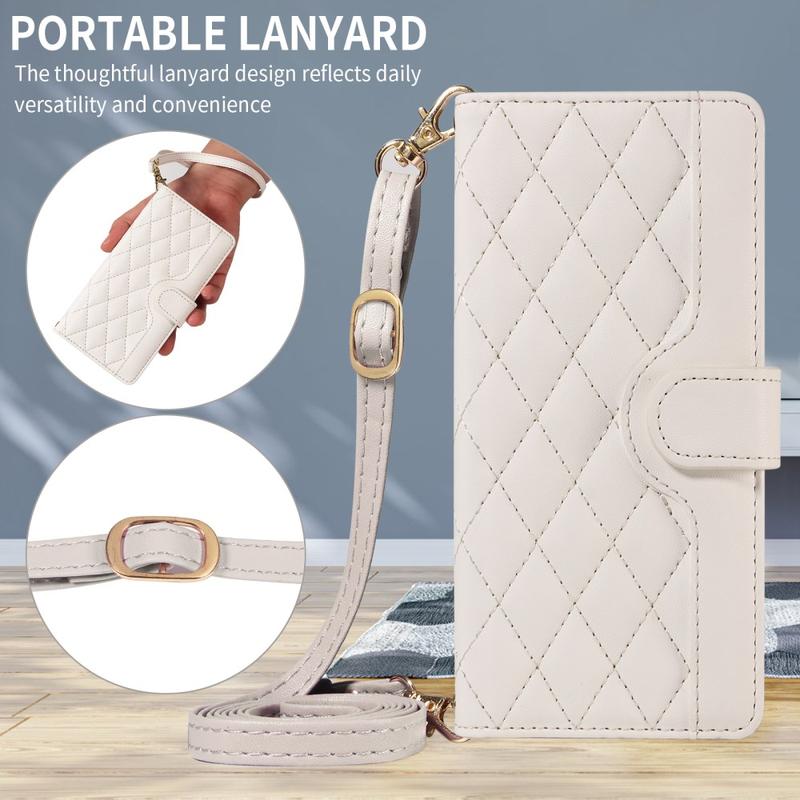 • Étui de luxe matelassée avec bandoulière et poignet pour Motorola Edge 70 - Étui protectrice à motif en losange