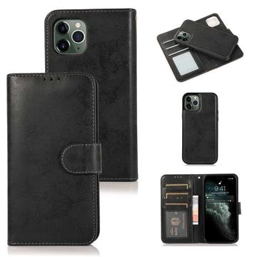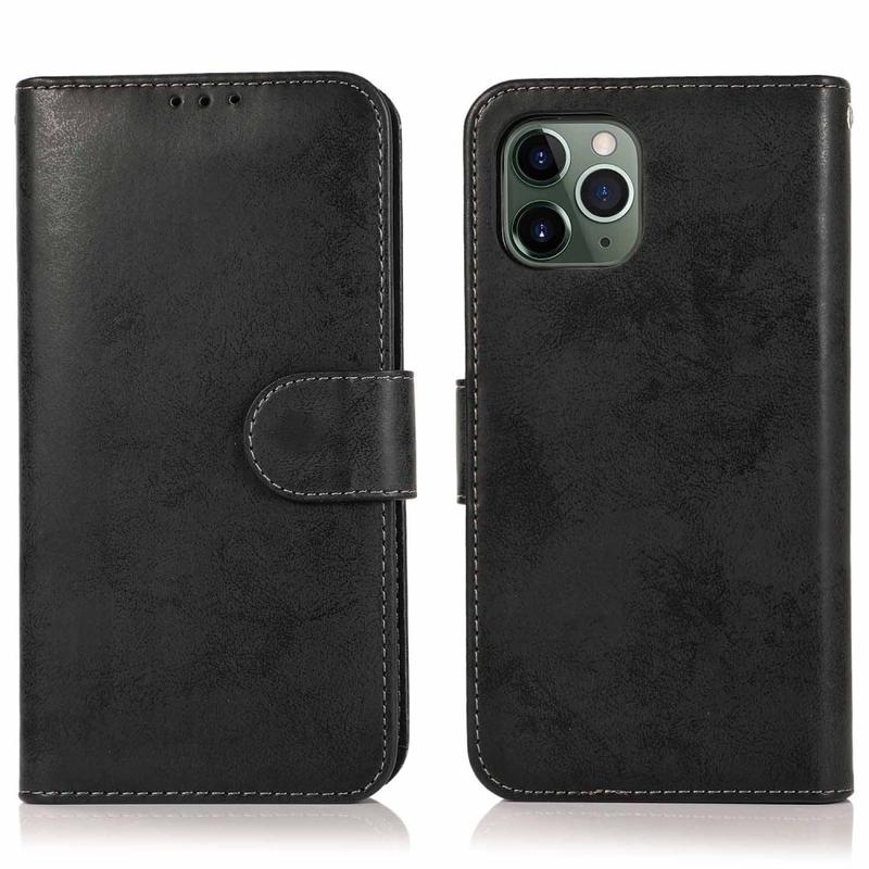 Étui portefeuille 2-en-1 vintage iPhone 12 avec couvercle amovible - Noir
