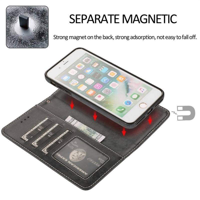 • Étui portefeuille vintage 2-en-1 avec rabat magnétique amovible pour iPhone 7 Plus, iPhone 8 Plus