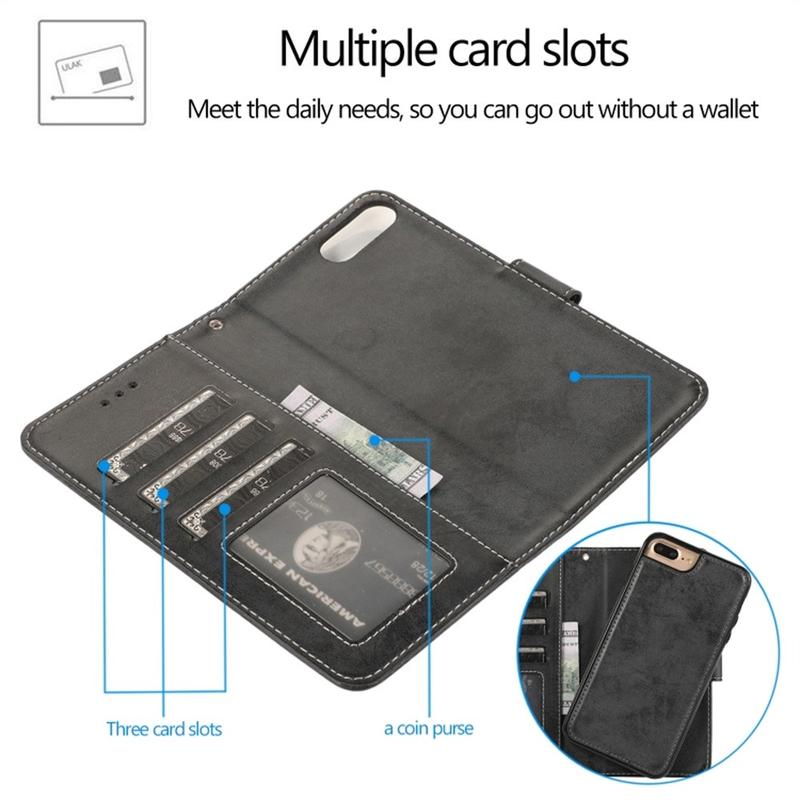 - 1 x étui portefeuille pour iPhone 7 Plus, iPhone 8 Plus avec couvercle amovible