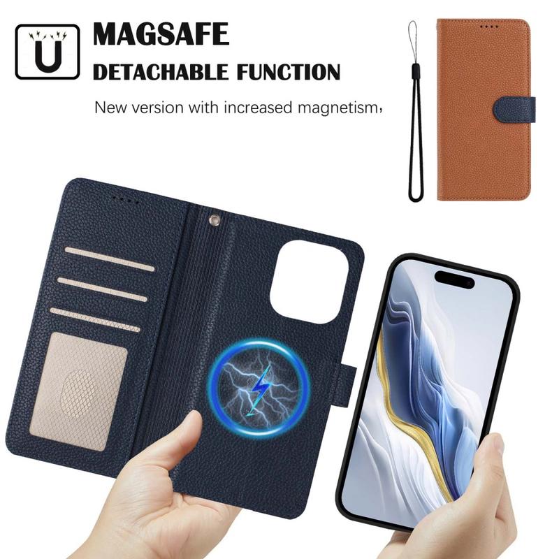 Étui portefeuille détachable avec MagSafe, protection RFID et dragonne pour iPhone 16 Pro