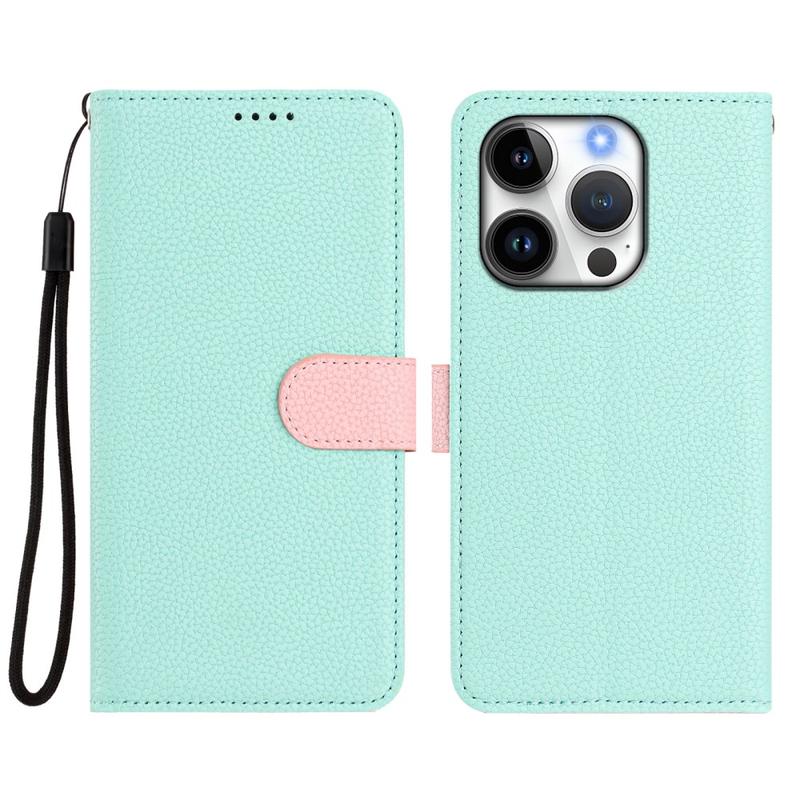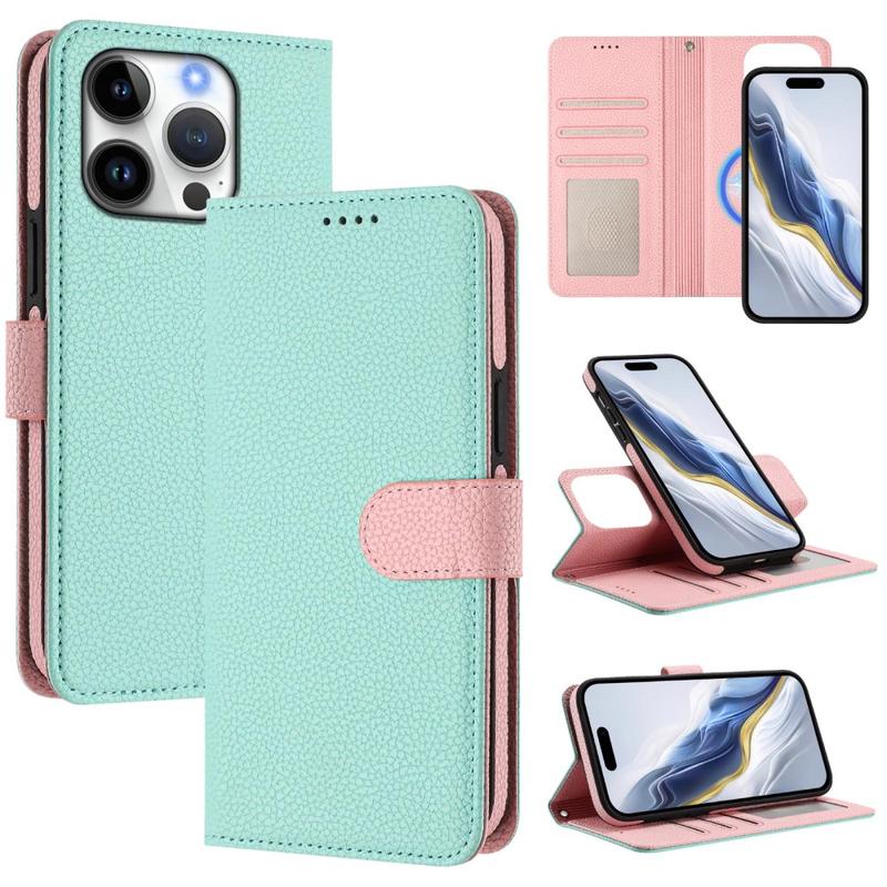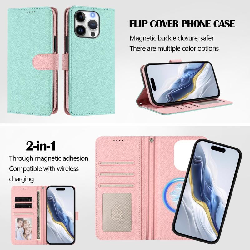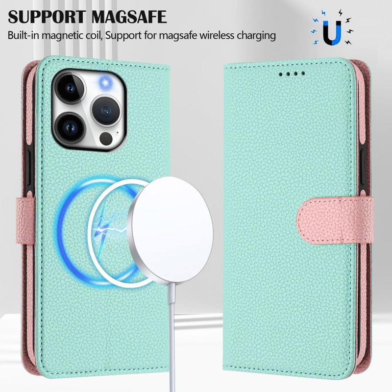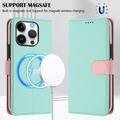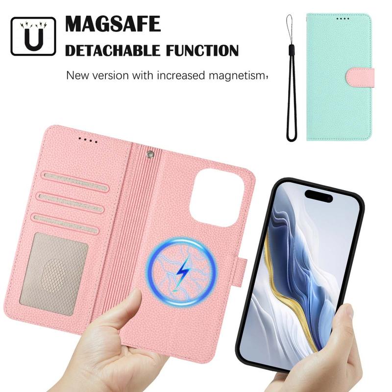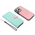 Étui portefeuille détachable iPhone 16 Pro avec MagSafe, protection RFID et dragonne - Menthe / Rose