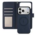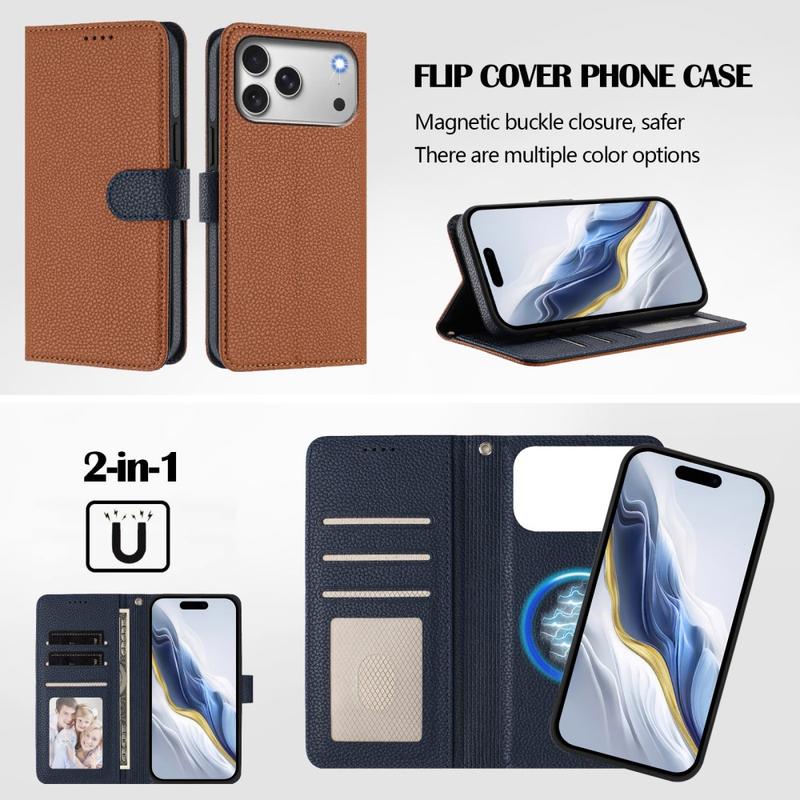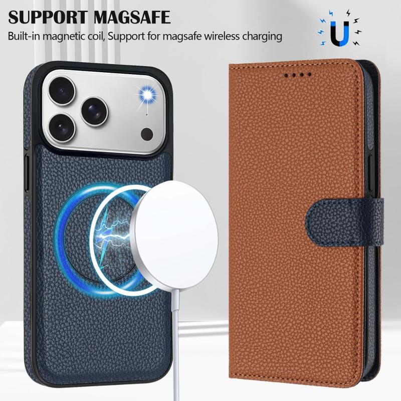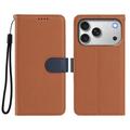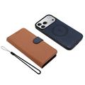Étui portefeuille détachable iPhone 17 Pro avec MagSafe, protection RFID et dragonne - Marron / Bleu