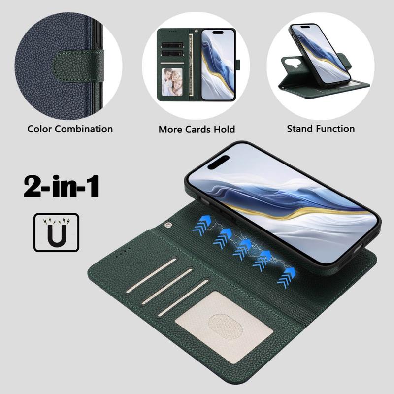 Profitez de la liberté d'un portefeuille détachable 2 en 1. Il comprend : 2 fentes pour cartes, 1 fente pour photos, 1 compartiment pour argent liquide.