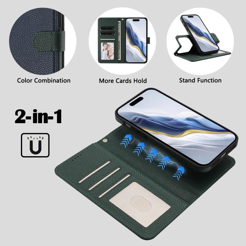 Profitez de la liberté d'un portefeuille détachable 2 en 1. Il comprend : 2 fentes pour cartes, 1 fente pour photos, 1 compartiment pour argent liquide.