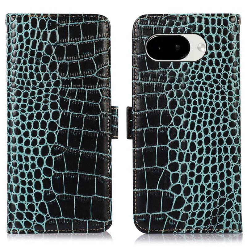 Etui Portefeuille en Cuir avec RFID Série Crocodile pour Google Pixel 10a