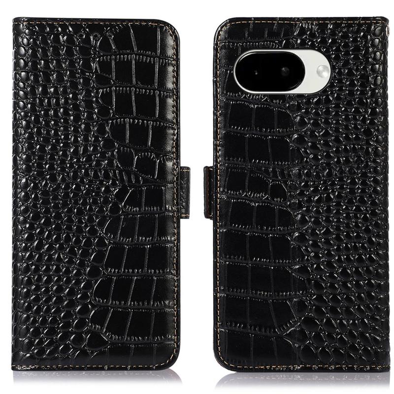Étui Portefeuille Google Pixel 10a en Cuir avec RFID - Série Crocodile - Noir