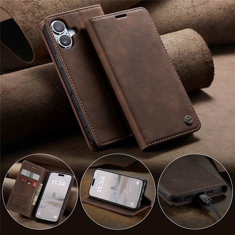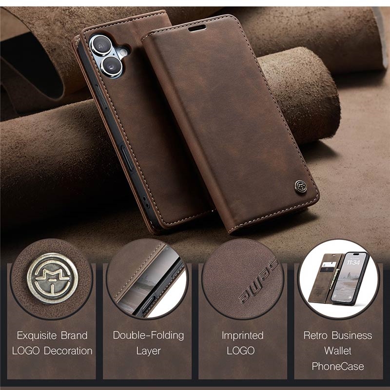 Étui Portefeuille iPhone 16 Plus Caseme Série 013 - Café