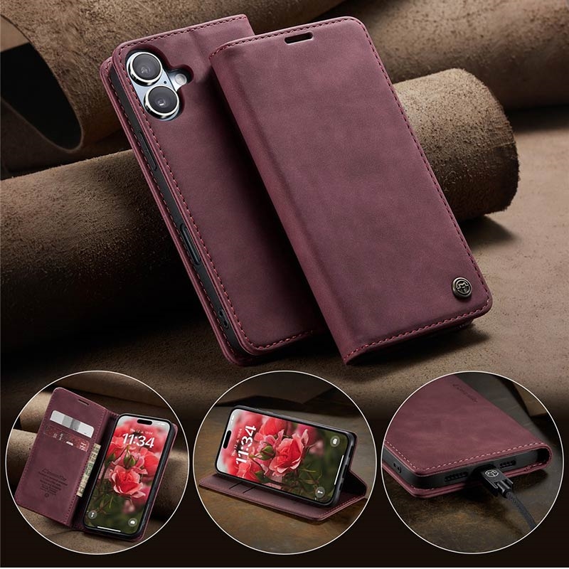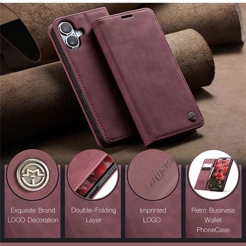 Étui Portefeuille iPhone 16 Plus Caseme Série 013 - Bordeaux