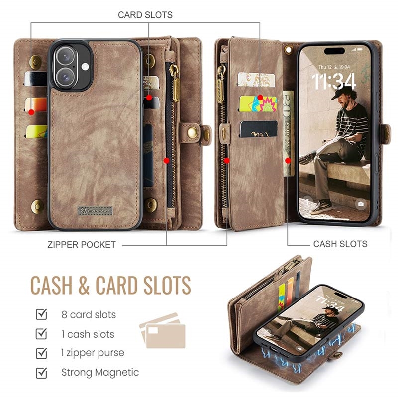 Etui Portefeuille Multifonctionnel 2-en-1 Caseme 008 pour iPhone 16 Plus