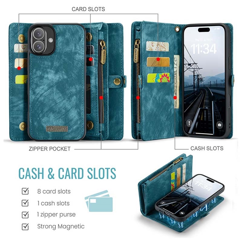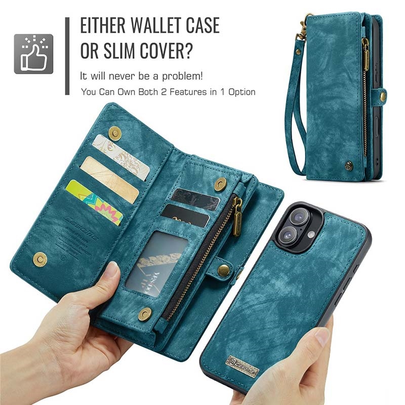 Etui Portefeuille Multifonctionnel 2-en-1 Caseme 008 pour iPhone 16 Plus