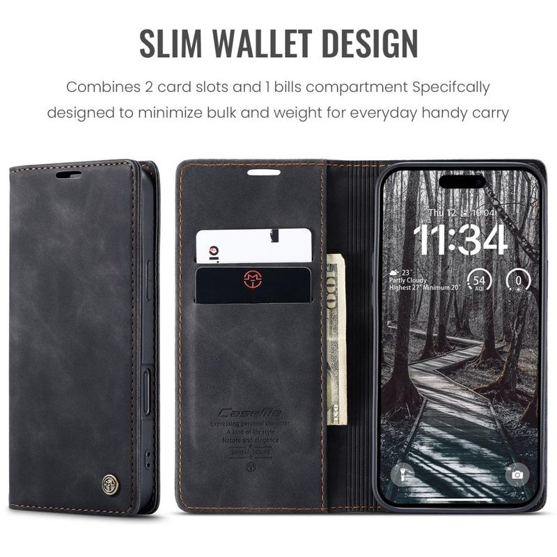 - Les aimants intégrés maintiennent l'étui portefeuille de la série Caseme 013 fermé