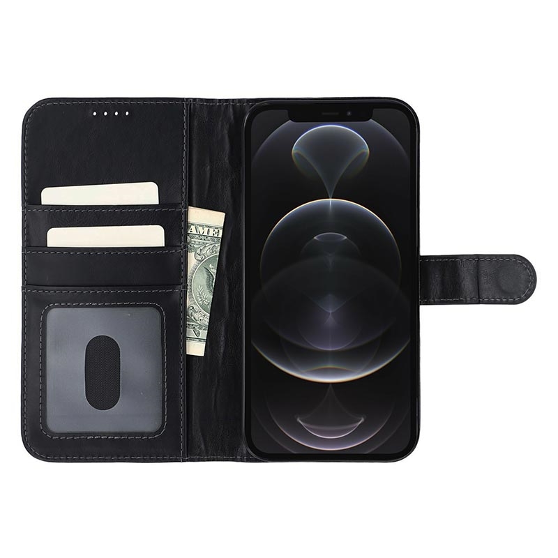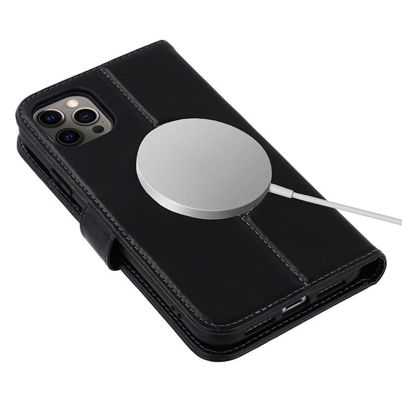 MyTPhone CardMate Premium étui portefeuille en cuir pour iPhone 12, iPhone 12 Pro - Stand, porte-cartes, recharge sans fil, 2 protections d'écran