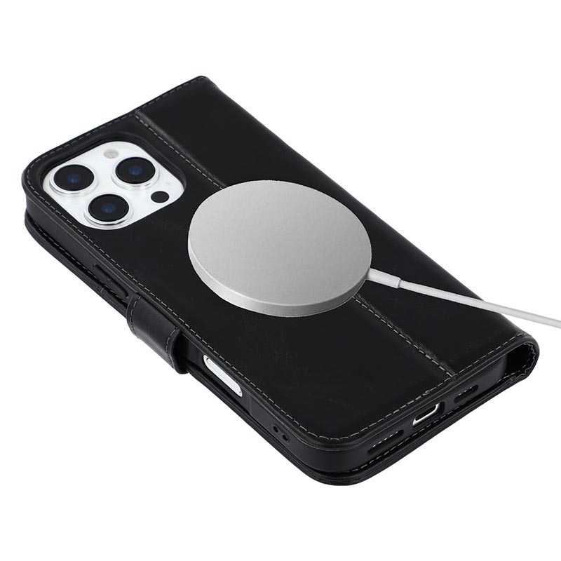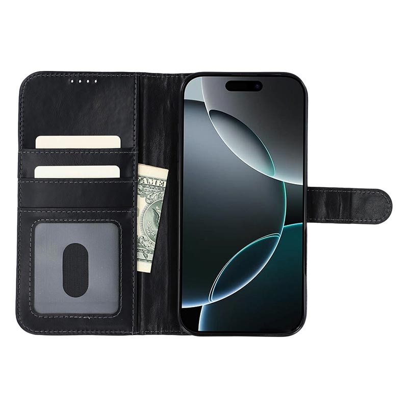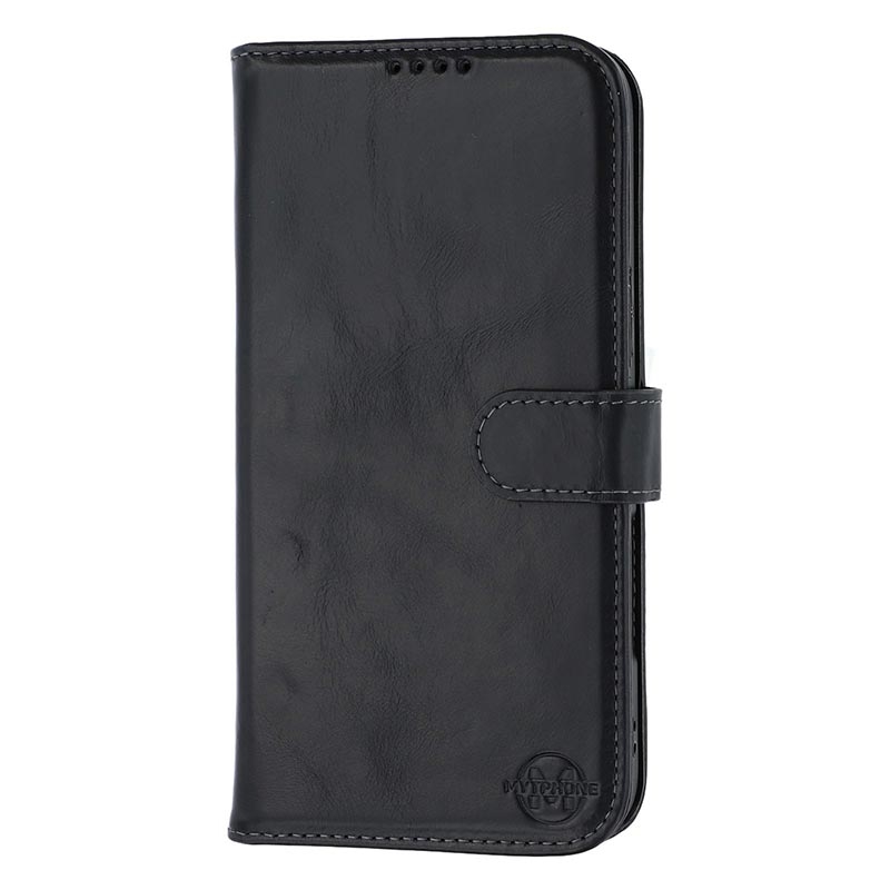 MyTPhone CardMate Premium étui portefeuille en cuir pour iPhone 16 Pro - Stand, porte-cartes, recharge sans fil, 2 protections d'écran