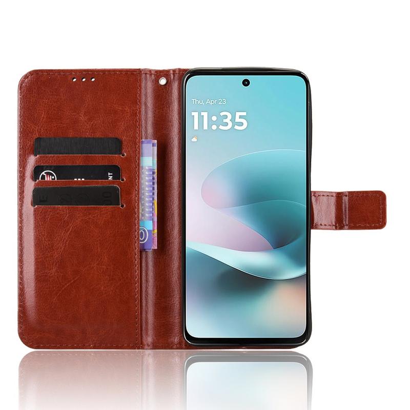Donnez à votre nouveau Motorola Moto G67 Power, Moto G57 Power, Moto G57 un look raffiné et vintage tout en remplaçant votre portefeuille de tous les jours. L'extérieur en polyuréthane à la texture Crazy Horse s'associe à une coque TPU absorbant les chocs pour protéger contre les chutes et les rayures, tandis que des poches astucieuses permettent d'organiser les cartes et l'argent.