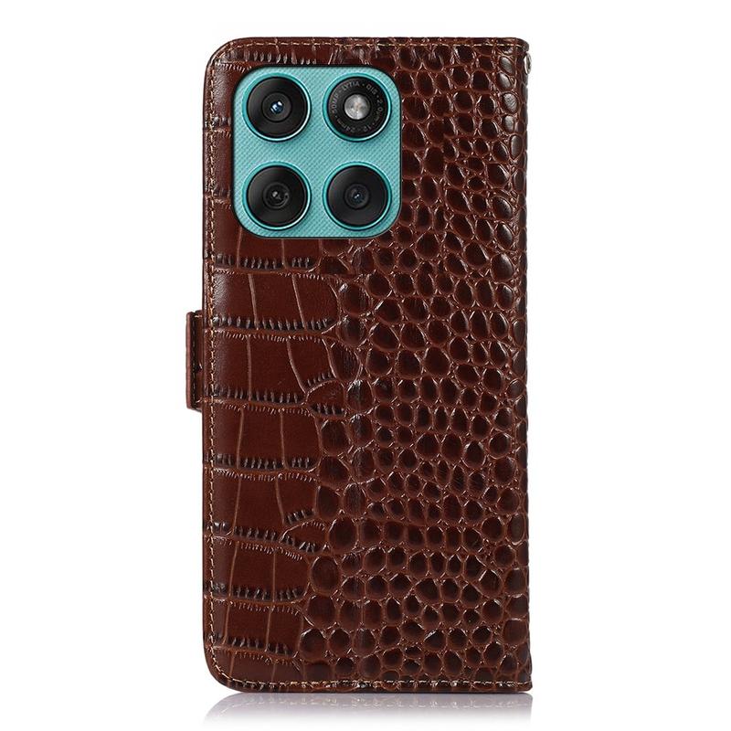 - Étui en cuir de portefeuille de la série Crocodile pour Motorola Edge 60 Fusion