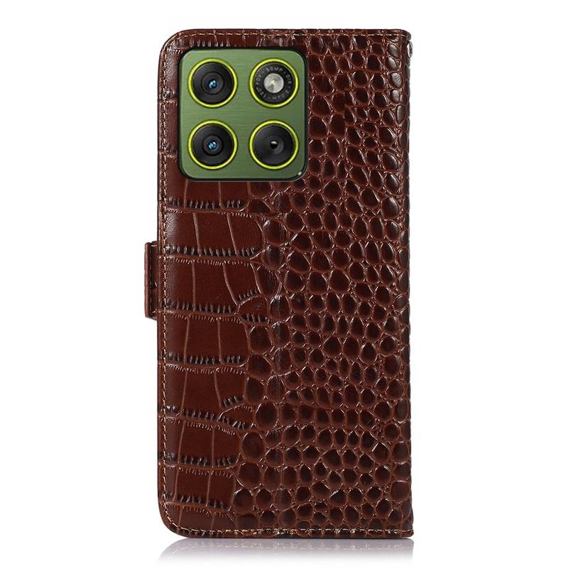- Étui en cuir de portefeuille de la série Crocodile pour Motorola Edge 70