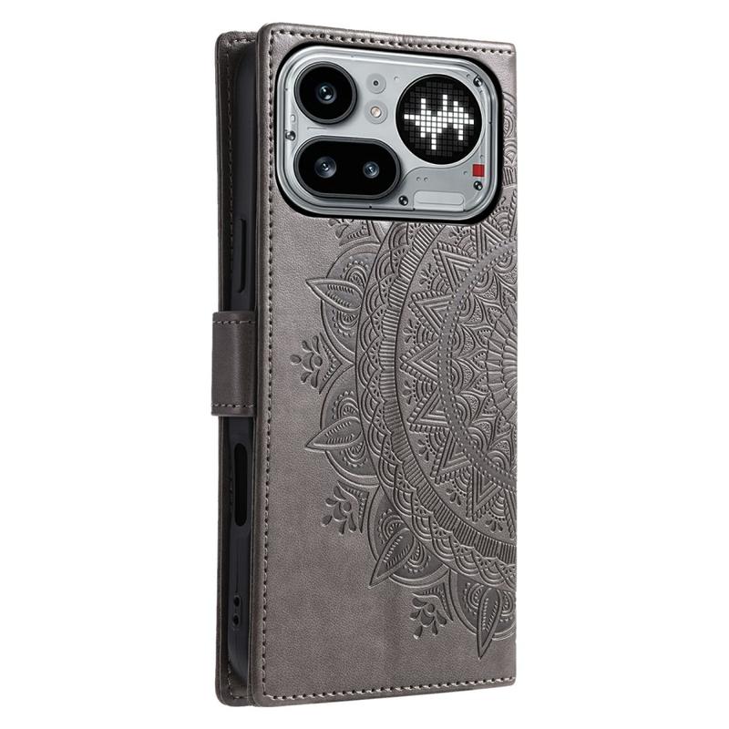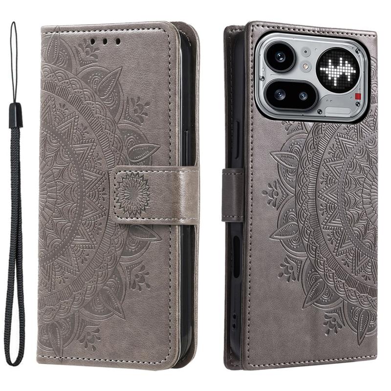 Étui Portefeuille Nothing Phone (4a) Pro Mandala avec dragonne - Gris