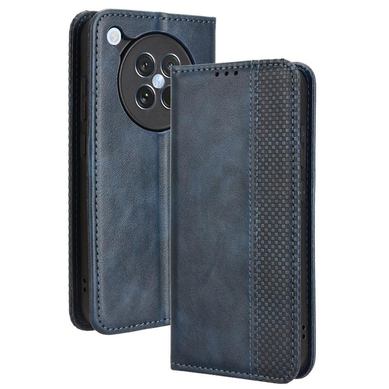 Étui Portefeuille Oppo Find X8s avec Fermeture Magnétique - Rétro - Bleu