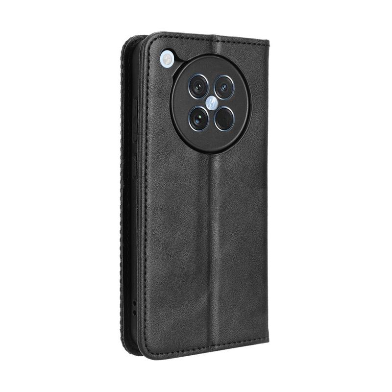 Étui Portefeuille Oppo Find X8s avec Fermeture Magnétique Rétro - Noir