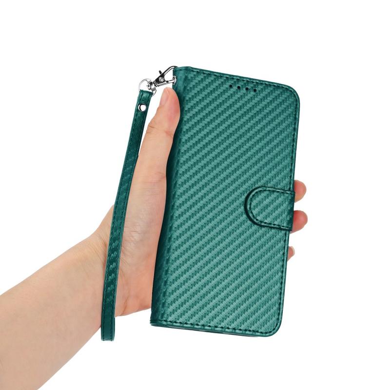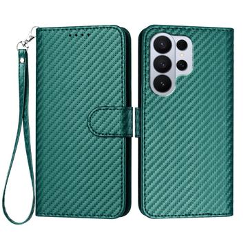 Etui portefeuille premium Samsung Galaxy S26 Ultra avec sangle - Texture fibre de carbone - Vert carbone