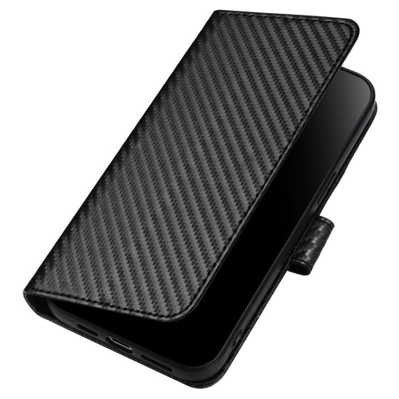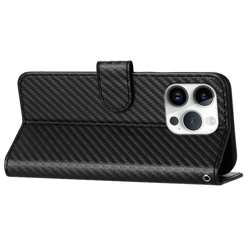 Etui portefeuille premium avec sangle pour iPhone 15 Pro - Texture fibre de carbone