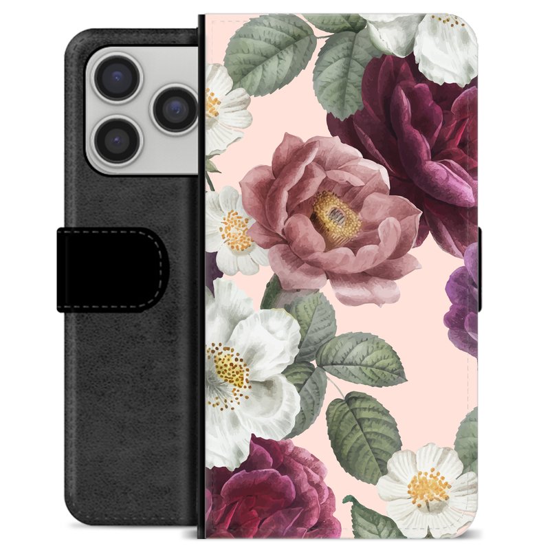 Étui Portefeuille Premium iPhone 17 Pro - Fleurs Romantiques