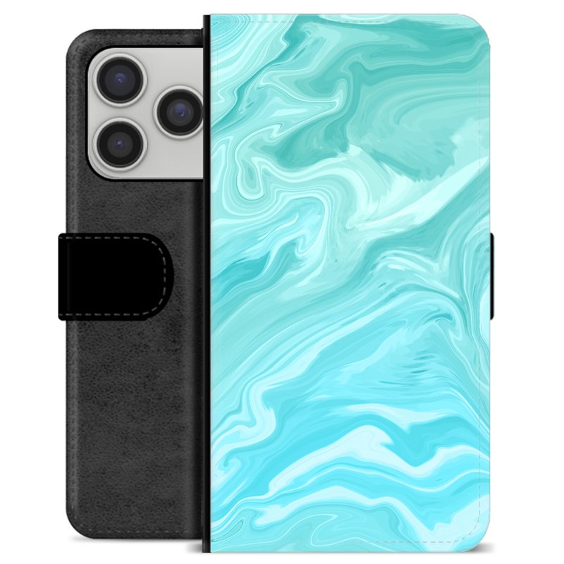 Étui Portefeuille Premium iPhone 17 Pro - Marbre Bleu
