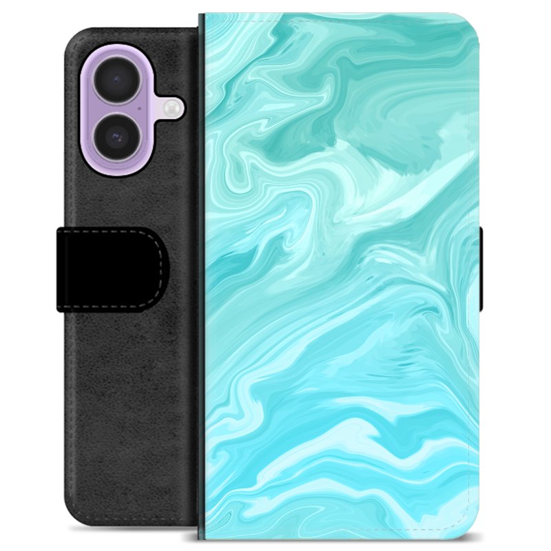 Étui Portefeuille Premium iPhone 17 - Marbre Bleu