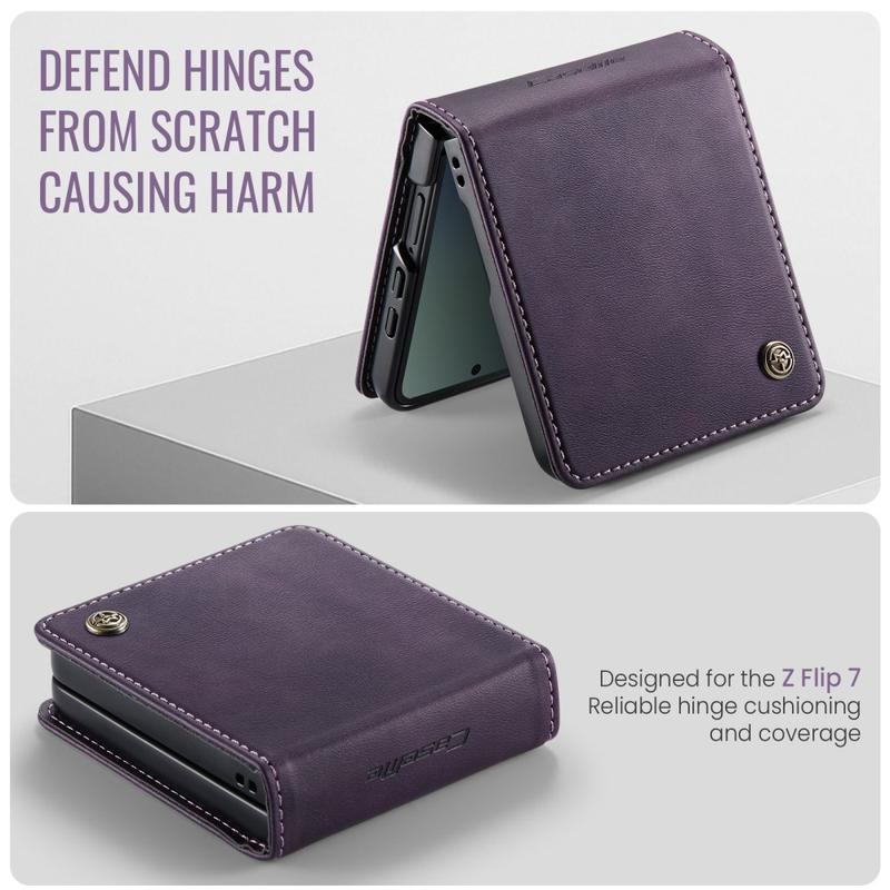• Étui portefeuille en texture de veau avec blocage RFID et fonction support Caseme 033 pour Samsung Galaxy Z Flip7