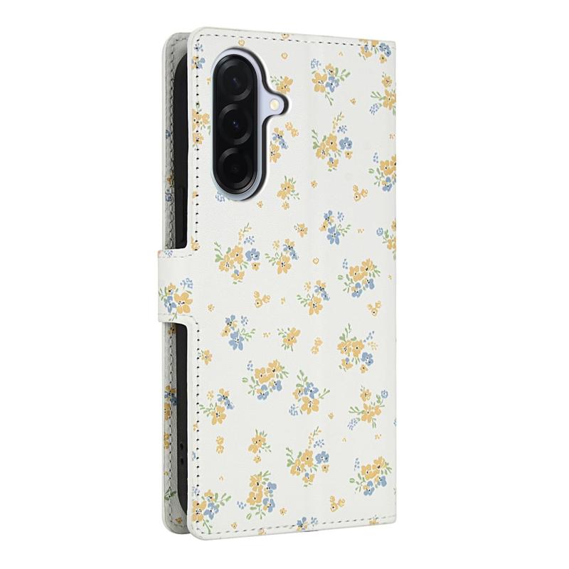 Étui portefeuille Samsung Galaxy A37 à motif floral rhombique - Fleurs jaunes
